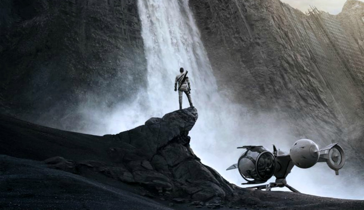 Dressed like he’s modeling for the role of Commander Shepard in Mass Effect, Tom Cruise plays drone repairman Jack Harper with a sense of wonder about his planet and a confusion about his true purpose. He’s been given a story by his superiors from above, but we realize, like Jack, that something doesn’t quite fit. He reads ancient books with ideas that challenge his acceptance of life’s situation. This serves not only the science fiction story in which Oblivion is set, but the sense of disconnect in our own lives that consistently inspires similar fiction, from The Matrix to Dark City. Morgan Freeman appears on the scene as Malcolm Beech, channeling his best Morpheus and all but offering Jack a blue pill / red pill scenario: